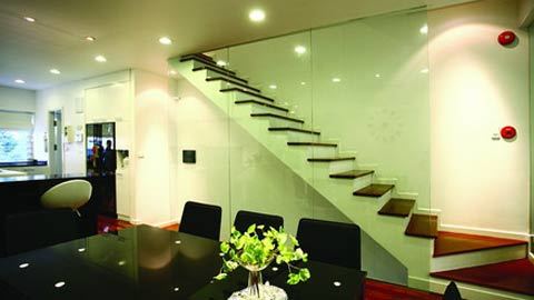 Kính cũng sử dụng nhiều trong nội thất như cầu thang, làm tường, vách ngăn...