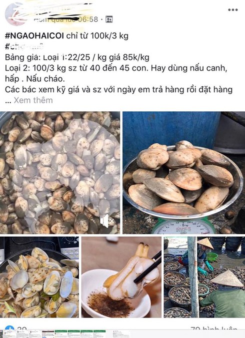 Nhiều người bán hàng online đang rao bán ngao hai cùi với giá rẻ khoảng 50.000-70.000 đồng/kg. Đặc biệt, nếu mua số lượng từ 3kg giá chỉ 35.000 đồng/kg.
