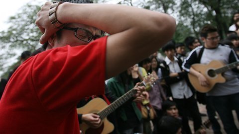 Không cần đàn giỏi, hát hay, chỉ cần đủ tự tin thể hiện khả năng bản thân bất kể là ai cũng có thể tham gia vào nhóm hát rong trên đường phố Hà Nội vào mỗi buổi chiều chủ nhật.