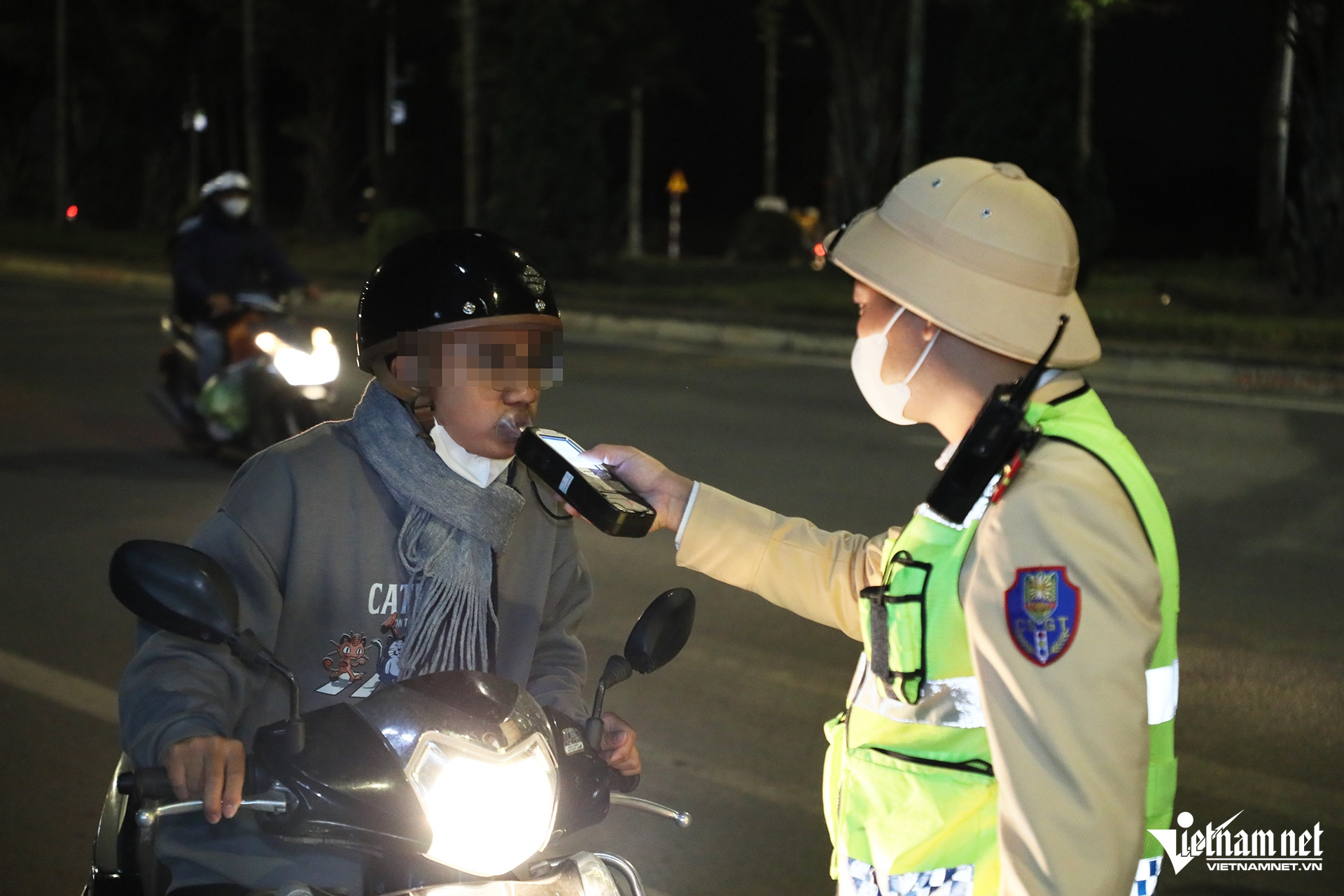 Đến 20h10, Tổ công tác phát hiện một người đàn ông điều khiển xe máy có biểu hiện né tránh lực lượng CSGT nên đã ra tín hiệu dừng xe. Kết quả kiểm tra cho thấy, người này vi phạm ở mức 0,067 mg/L khí thở.