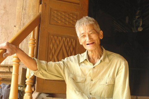 Cụ Hoàng Văn Phòng, 72 tuổi, cha đẻ của trưởng thôn Bản Nhuần, anh Hoàng Đình Hải, là người đầu tiên mà chúng tôi gặp tại Bản Nhuần.