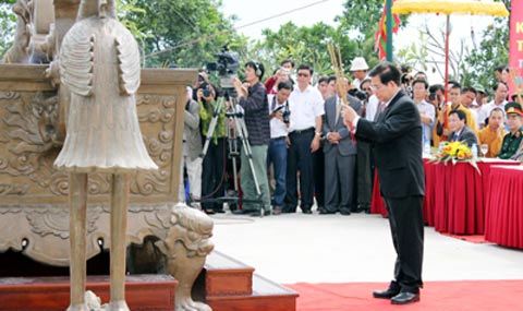 Chủ tịch nước Nguyễn Minh Triết thắp hương trong ngày khánh thành tượng