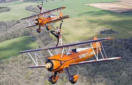 Thực hiện những động tác nhào trên cánh máy bay ở độ cao 300m không phải là một ý tưởng hài hước đối với mọi người nhưng đó lại là công việc hàng ngày của những cô gái này.