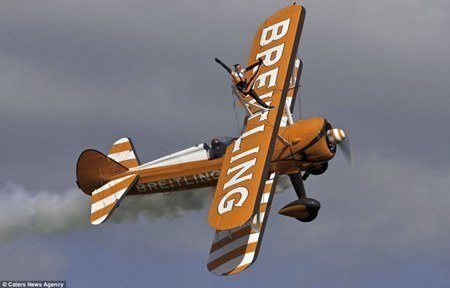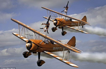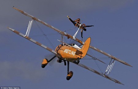 Những thành viên của đội nhào lộn trên cánh máy bay duy nhất trên thế giới: Sarah Tanner, Danielle Hughes và Stella Guilding đã thực hiện một loạt các động tác mạo hiểm trong khi máy bay di chuyển với tốc độ 240km/h.