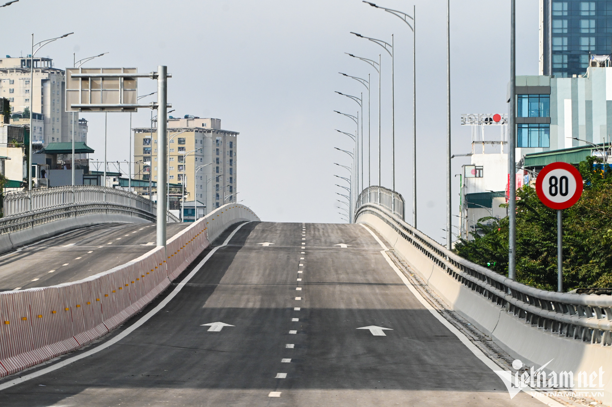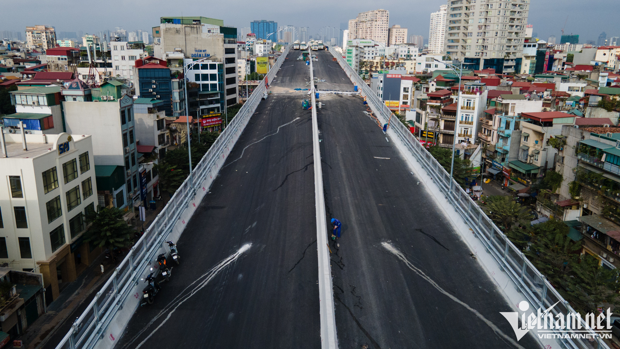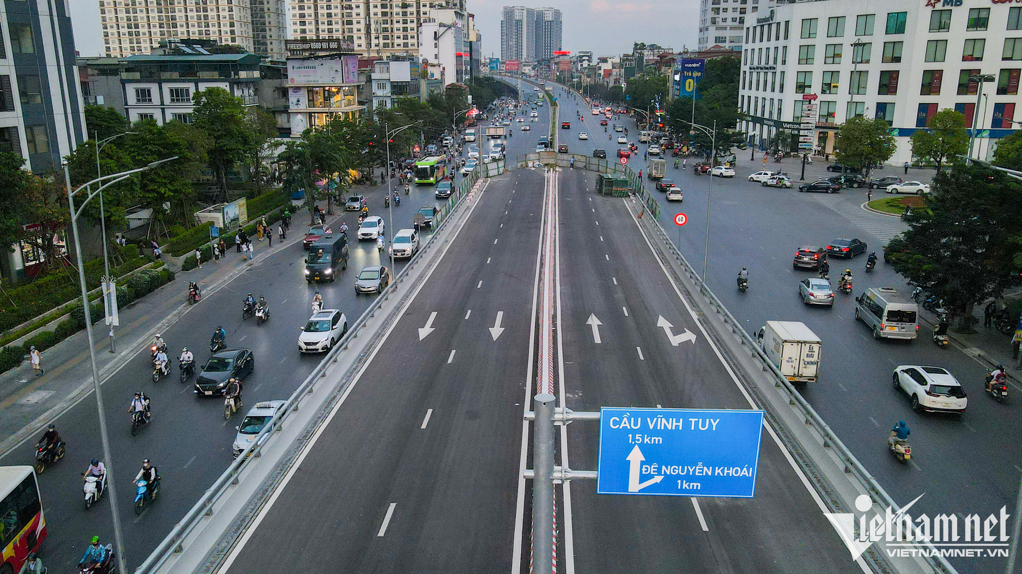 Trước đó, đoạn Vĩnh Tuy - chợ Mơ cũng được hoàn tất vạch kẻ đường, lắp chống ồn trong suốt, biển báo.