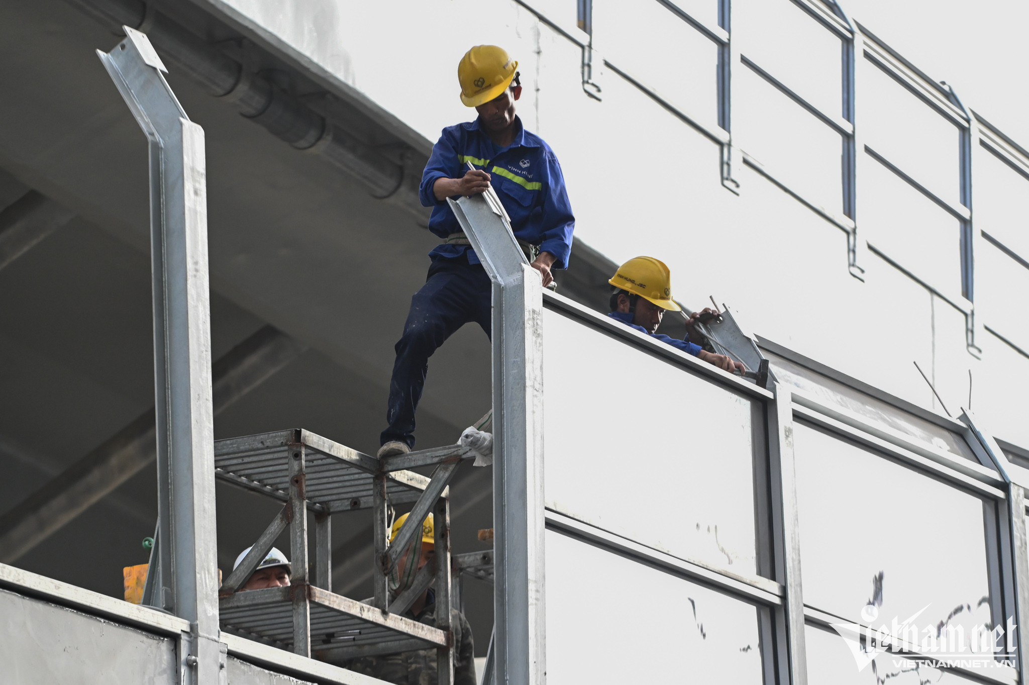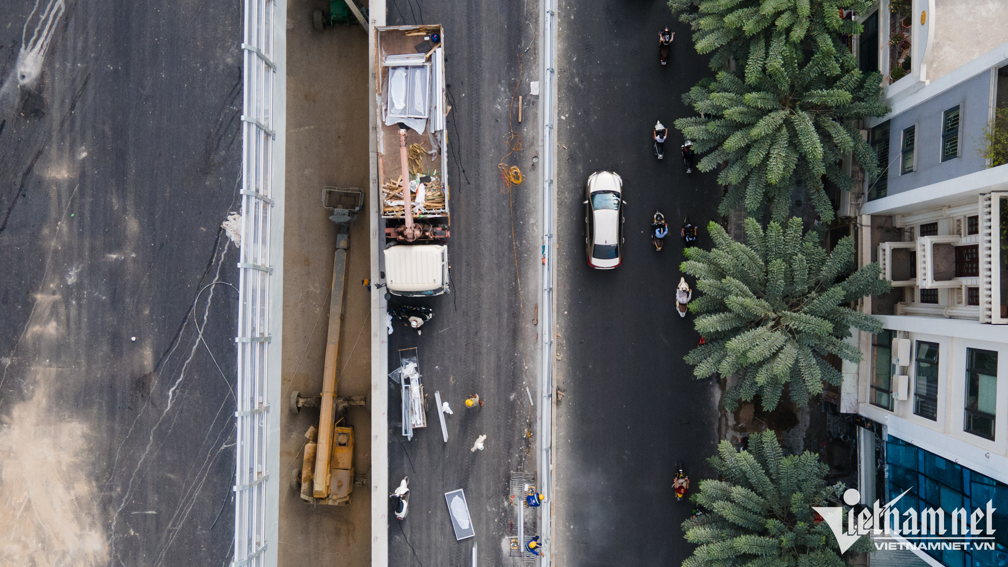 Hệ thống chắn ồn, các hạng mục của hai nhánh lên xuống cơ bản đã hoàn thiện. Trước khi hàng rào cuối cùng được dỡ bỏ, máy xúc được đưa tới để thu dọn rác, đất cát tràn ra đường.
