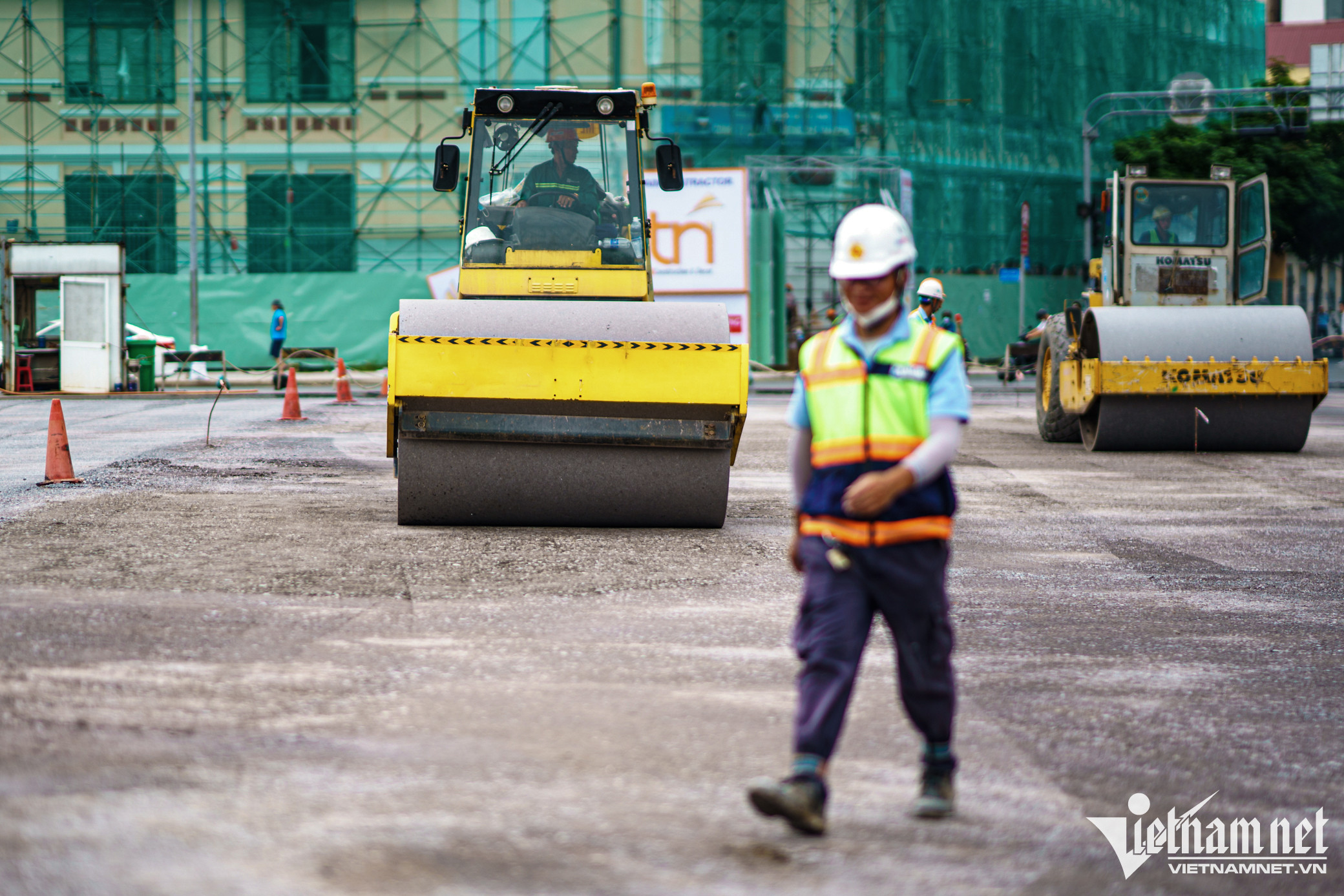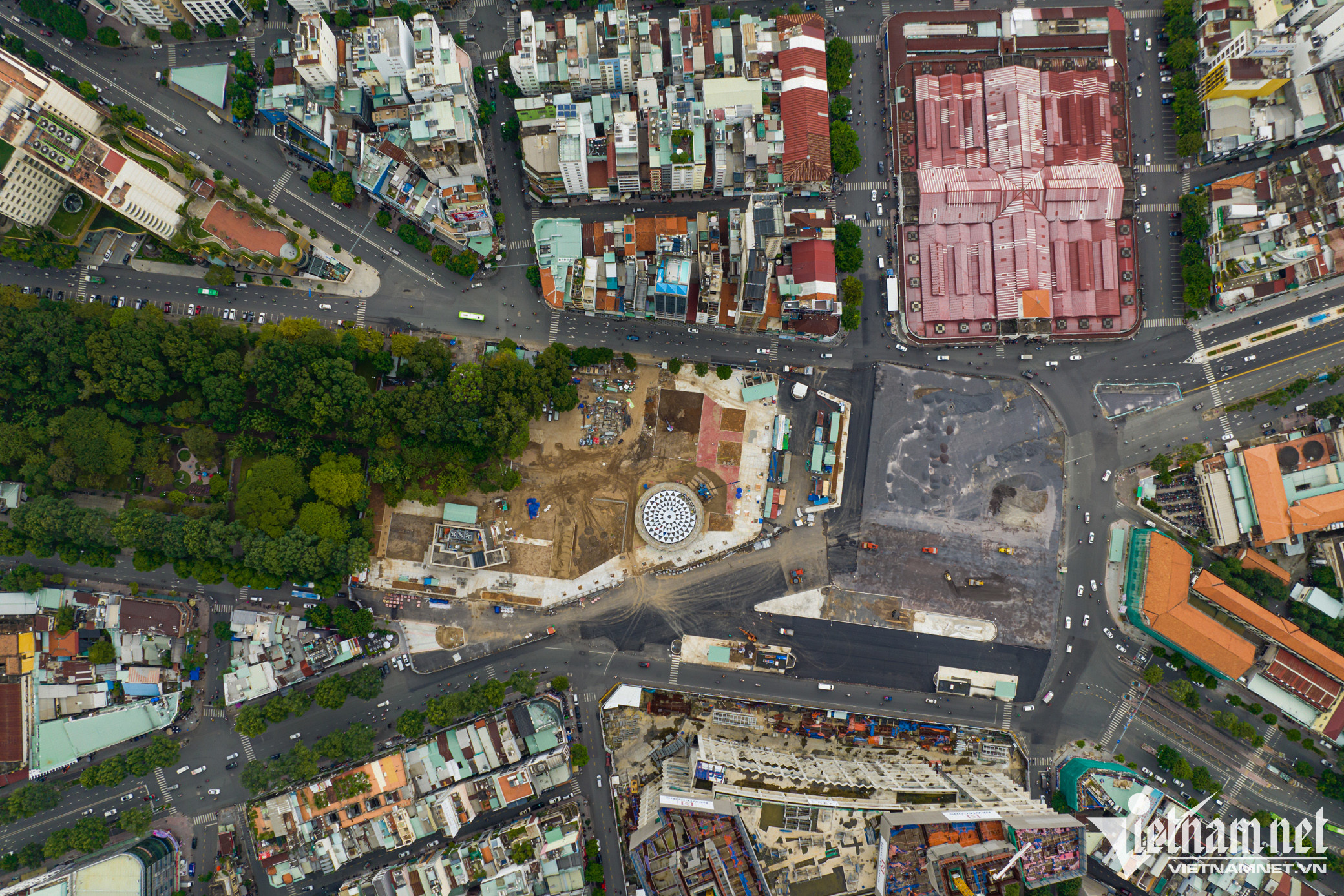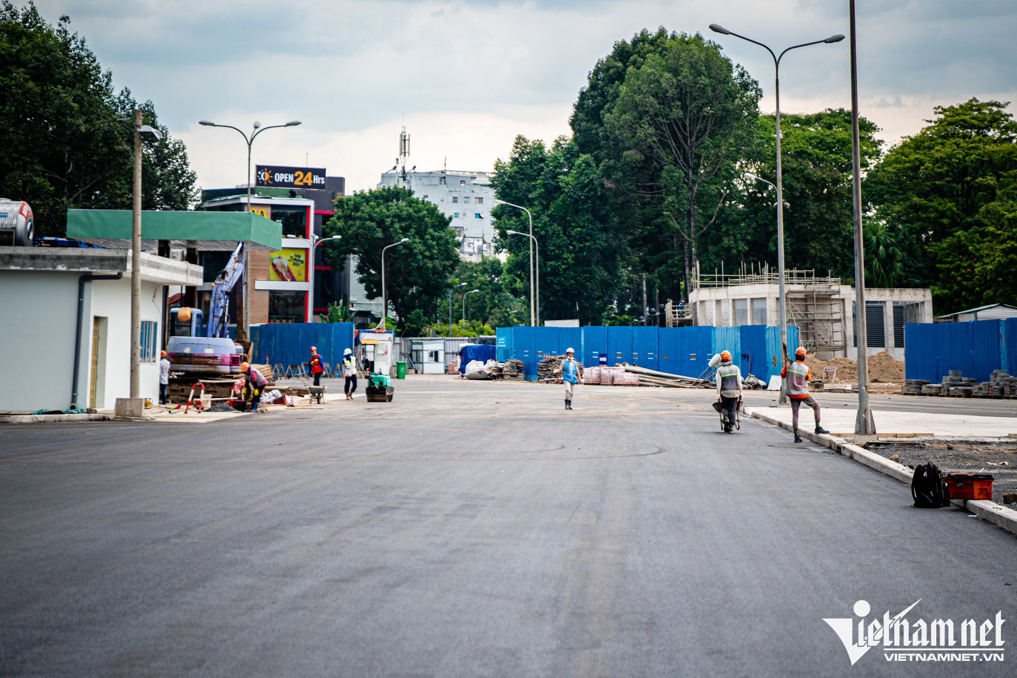 Mặt đường cuối cùng tuyến Metro số 1 nằm phía trước chợ Bến Thành thuộc tuyến Metro Bến Thành - Suối Tiên đang được khẩn trương thi công, dự kiến hoàn thành vào cuối tháng 10.Vòng xoay Quách Thị Trang có lịch sử lâu đời được phá bỏ và rào chắn lại từ tháng 2/2017 để có mặt bằng thi công, nay đã được tái lập lại mặt đường.Tại đây, 4 xe lu, 1 xe ủi, 1 xe cẩu múc, 1 xe tải có dung tích 20-25 m³ cùng hàng chục công nhân chia thành 3 ca, tất bật làm việc từ sáng đến tối. Đơn vị thi công đang rải đá, trải thảm nhựa đường, sau đó trồng lại các bồn hoa lắp đặt trụ đèn chiếu sáng.