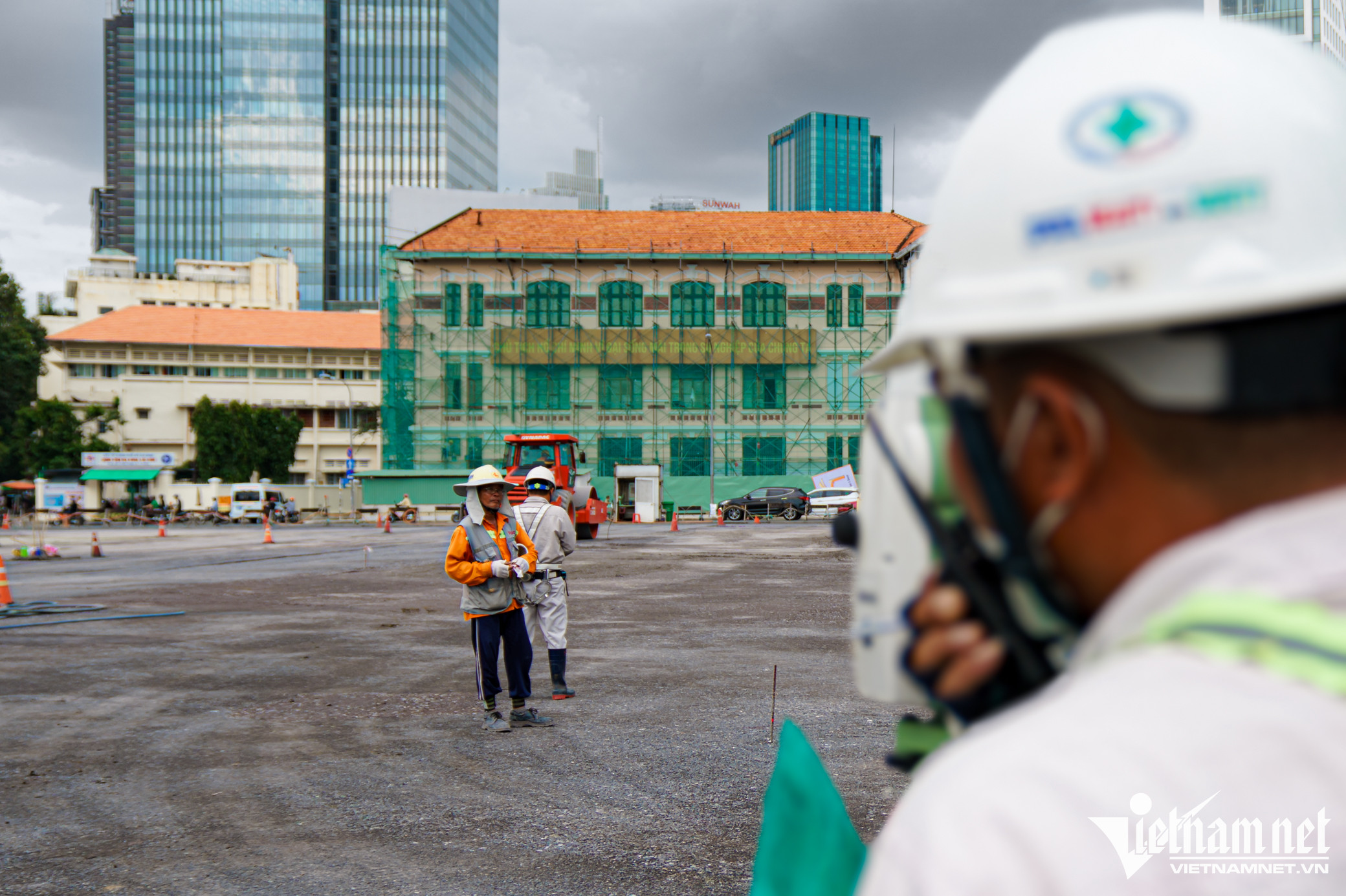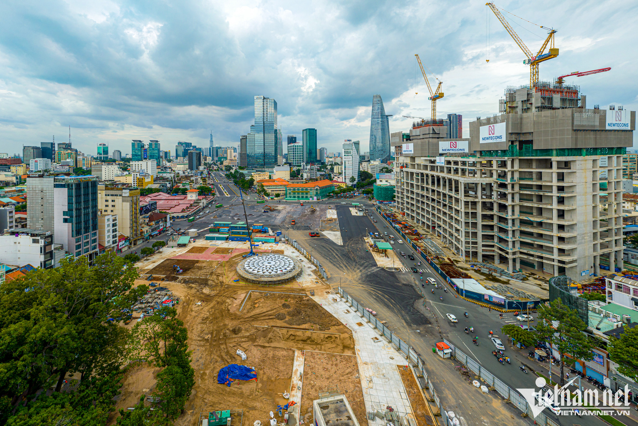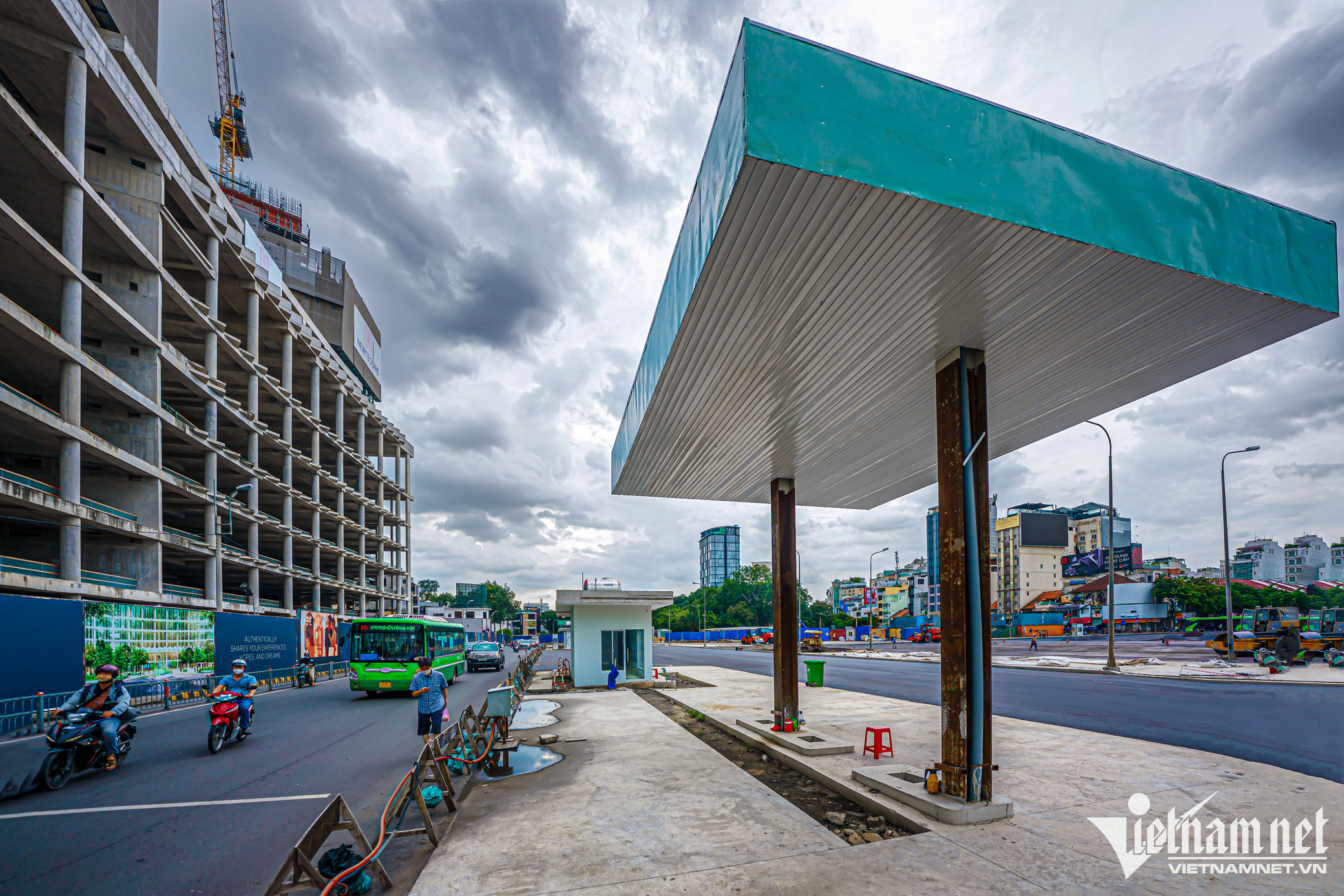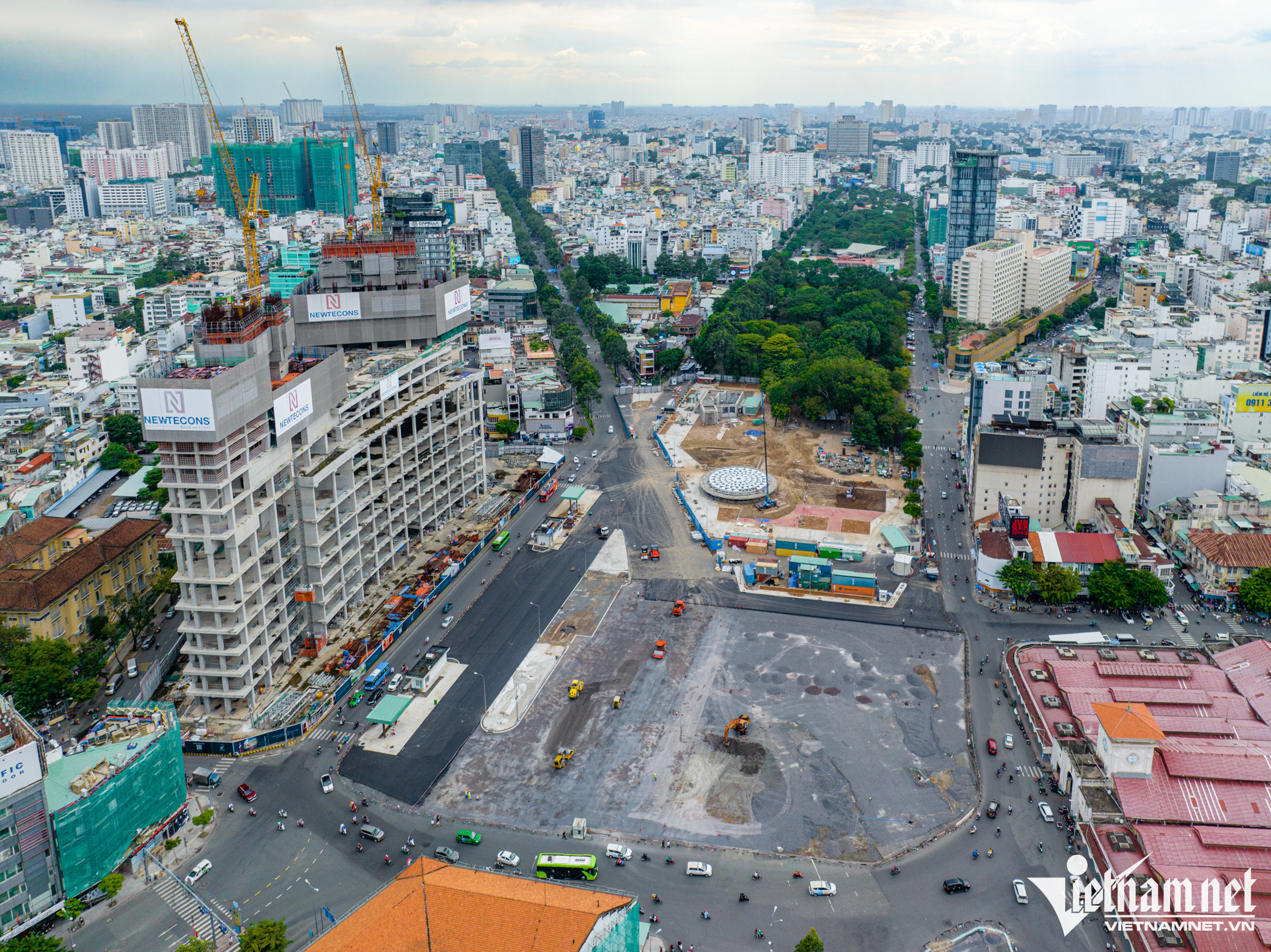 Mặt đường cuối cùng tuyến Metro số 1 nằm phía trước chợ Bến Thành thuộc tuyến Metro Bến Thành - Suối Tiên đang được khẩn trương thi công, dự kiến hoàn thành vào cuối tháng 10.Vòng xoay Quách Thị Trang có lịch sử lâu đời được phá bỏ và rào chắn lại từ tháng 2/2017 để có mặt bằng thi công, nay đã được tái lập lại mặt đường.Tại đây, 4 xe lu, 1 xe ủi, 1 xe cẩu múc, 1 xe tải có dung tích 20-25 m³ cùng hàng chục công nhân chia thành 3 ca, tất bật làm việc từ sáng đến tối. Đơn vị thi công đang rải đá, trải thảm nhựa đường, sau đó trồng lại các bồn hoa lắp đặt trụ đèn chiếu sáng.