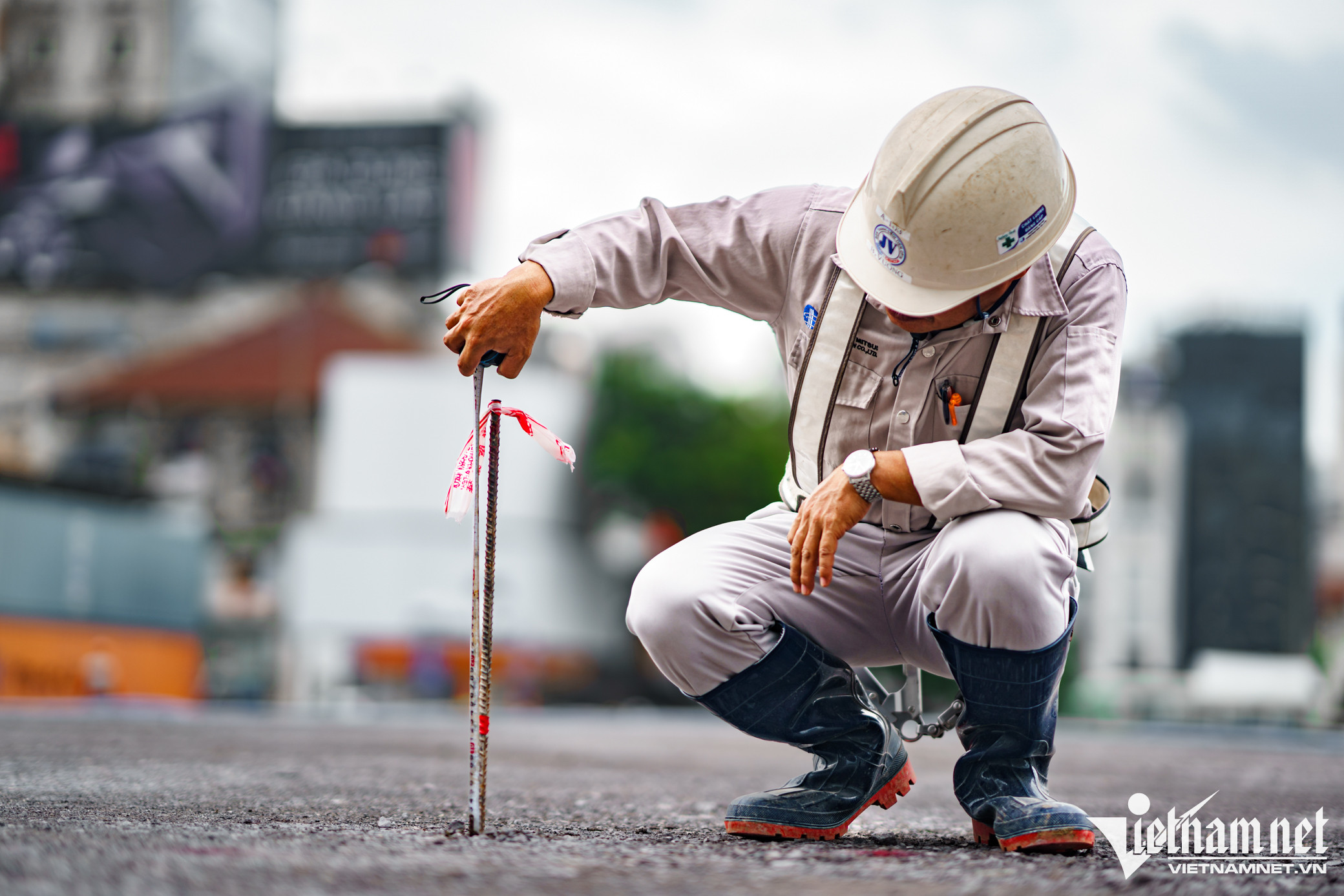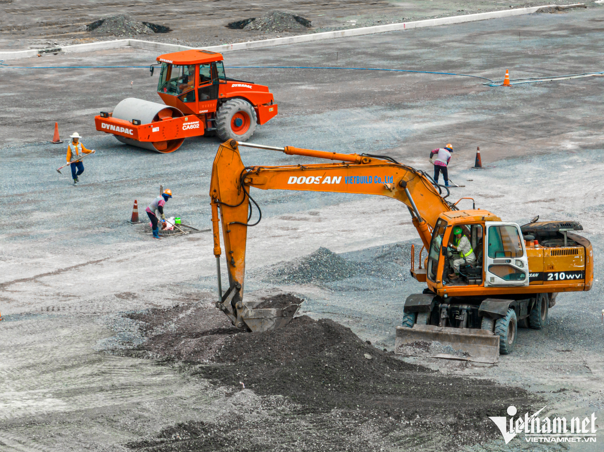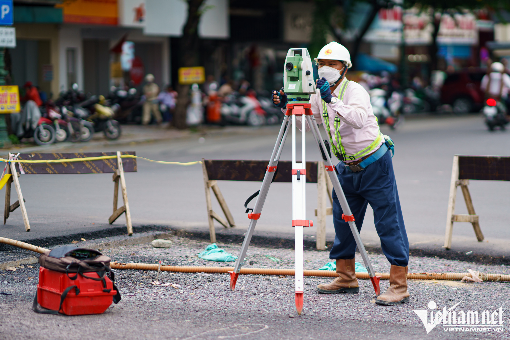 Kỹ sư vẽ bản đồ và đo chi tiết xây dựng, nhà thầu gấp rút tăng cường nhân lực, cố gắng hoàn thành kịp tiến độ.