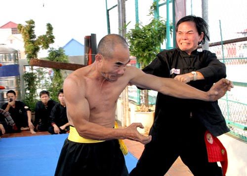 Mỗi tiếng ha... lấy đà vung gậy hết sức đập xuống tấm thân cởi trần đang đứng, tôi nín thở, rùng mình. Người thứ nhất, toát mồ hôi, thở hổn hển, buông "gậy", võ sư thứ hai trẻ khoẻ, cơ bắp cuồn cuộn tiếp tục xuất chiêu. Gậy xuống vun vút đập vào thân mình bật ra, chẳng khác gì que đánh bịch bông. Ba người liên tiếp đập mệt lử, thanh sắt dày bị uốn cong, anh Vân tươi cười đi một vài đường quyền thuật rồi ra bắt tay mọi người, chỗ bị đánh chỉ hơi ửng đỏ.