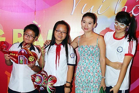 Diễn viên Mỹ Uyên đến chung vui cùng các em nhỏ.
