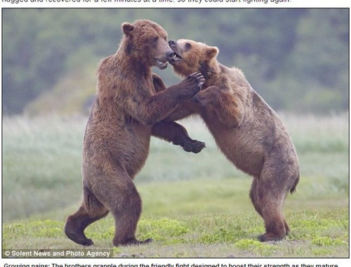 Trong suốt 50 phút diễn ra cuộc chiến, hai chú gấu này không hề để ý tới sự có mặt của Christopher. Trước khi đánh nhau chúng đã tự đào hang và ăn no, sau khi đánh nhau chúng lại chui vào hang để ngủ. Christopher cho biết mặc dù hai chú gấu con thường xuyên đánh nhau nhưng đây giống như một trò đùa của chúng, qua đó chúng có thể trau dồi thêm kỹ năng cho bản thân.