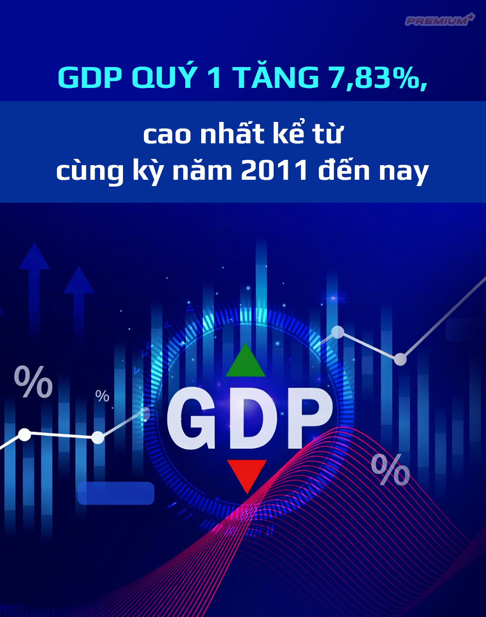 Tổng sản phẩm trong nước (GDP) quý 1 ước tăng 7,83% so với cùng kỳ năm trước. Chỉ số giá tiêu dùng (CPI) trong 3 tháng đầu năm tăng 3,51%.