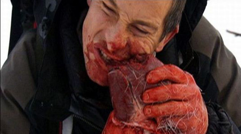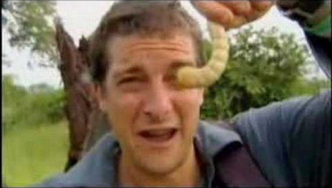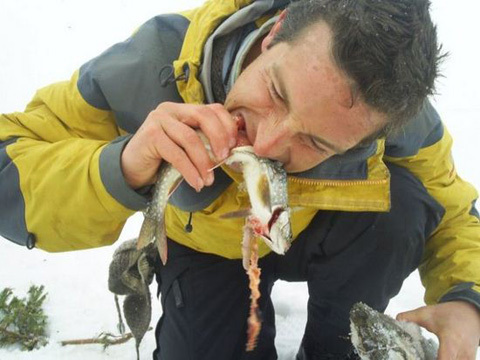 Bear chia sẻ anh đã từng phải ăn giun, châu chấu, cá sống hay thậm chí cả thịt lạc đà, thịt ngựa sống… để có thể tiếp tục sống sót trong những hoàn cảnh tuyệt vọng. “Ban đầu thật khó tưởng tượng tôi có thể ăn được những thứ đó. Nhưng khi cái chết đã cận kề, lòng ham sống trỗi dậy thì đó là loại thức ăn duy nhất tôi có thể ăn”, Bear cho biết.
