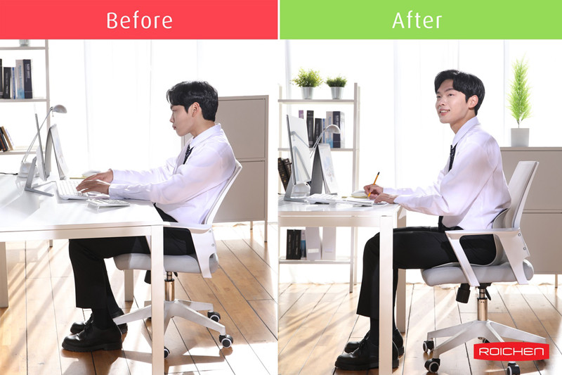 Chúng ta vẫn thường được nhắc ngồi thẳng lưng lên để chỉnh lại dáng ngồi đúng, nhưng đôi khi bạn không tự ý thức được điều đó suốt một ngày dài làm việc. Vì vậy có thể nói ghế Roichen giống như một trợ thủ đắc lực, luôn kề cận nhắc nhở và giúp điều chỉnh tư thế ngồi chuẩn xác.