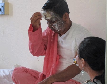 Ngồi trên giường bệnh, anh Trí cho biết “Ngày 3-1, tôi đi làm về có cãi vả với vợ. Trong khi tôi đang ngồi, bất ngờ cô ấy từ phía sau bưng nguyên nồi nước sôi đổ thẳng từ trên đầu tôi xuống. Nóng quá, tôi bung chạy và hô hoán, gia đình vội đưa đi cấp cứu ở Bệnh viện Đa Khoa Đồng Tháp. Hiện tại, tôi thấy đã đỡ hơn nhiều rồi”.