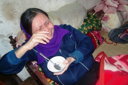 Nằm giường đối diện là em gái út tên Ngô Thị Hoa (SN 1962) cũng không chồng, không con. Chị Hoa bị bệnh đau đầu gần chục năm trở lại đây, cứ đi lại là choáng rồi ngất xỉu. Chị đã nằm liệt giường 1 năm nay. Cơm, cháo, vệ sinh tại chỗ cho 2 người đều nhờ cậy vợ chồng ông Nghi.