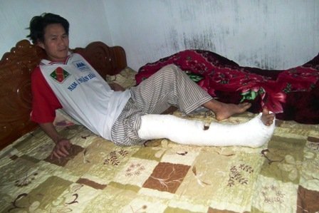 Là lao động chính trong nhà, nhưng anh Dần bị tai nạn gãy chân từ trước tết đến nay vẫn chưa lành
