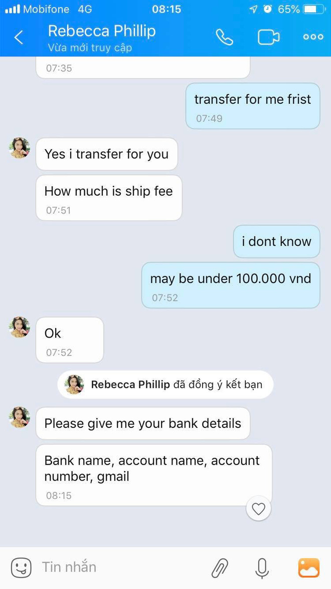 Vậy chúng làm cách nào để nạn nhân dễ dàng nghe theo răm rắp như vậy? Thực chất, lý do chúng hỏi thông tin cá nhân về tài khoản ngân hàng, email... nhằm mục đích tạo một bản sao hoá đơn giả, sau đó chụp ảnh lại để đánh lừa rằng giao dịch đã được thực hiện, nhưng vì sự cố nào đó mà tiền chưa tới đích. Trước đó, chúng cũng khôn ngoan tạo dựng một bôi cảnh giả rằng mình đang ở nước ngoài, muốn mua tặng bạn nhưng không thể đến trực tiếp xem hàng được nên sẽ chuyển khoản cọc trước. Nếu cả tin, nhiều người sẽ dễ dàng bị thuyết phục bởi bức ảnh ghép giả mạo đó, nghe theo mà chuyển hàng luôn cho chúng, để rồi sau đó mới nhận ra tất cả chỉ là một màn kịch xuất sắc.