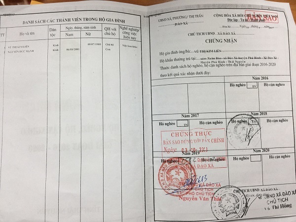 Gia đình bà Vũ Thị Kim Liên (sinh năm 1980) ở xã Đào Xá - huyện Phú Bình - tỉnh Thái Nguyên. thuộc diện đặc biệt khó khăn của xã.