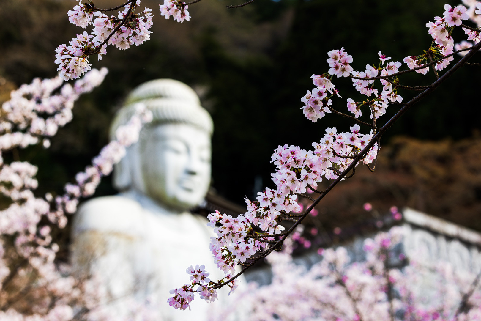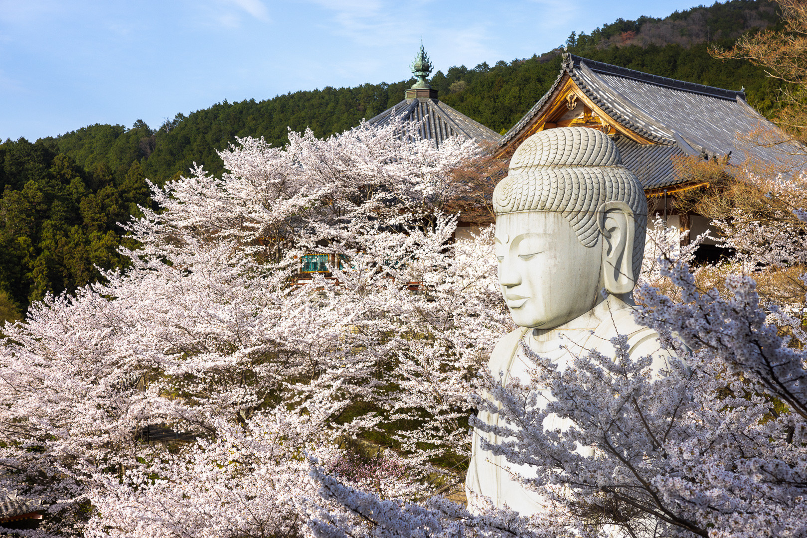 Ngôi chùa Tsubosaka được xây dựng trên ngọn núi cùng tên, là địa điểm ngắm hoa anh đào đẹp nổi tiếng ở tỉnh Nara. Mùa xuân, bức tượng Phật uy nghi được "bao phủ" trong những tán hoa anh đào đẹp mộng mơ, thuần khiết, tạo nên không gian tựa tiên cảnh.