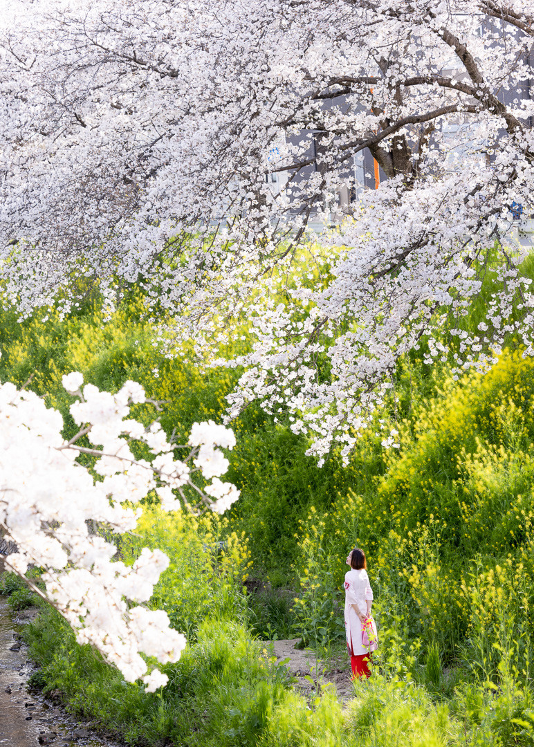 Địa điểm vợ chồng anh Chiêm mê mẩn nhất là "dòng sông anh đào" ở Nara. Hàng ngàn cây hoa anh đào được trồng bên bờ sông Takada từ năm 1948 đồng loạt nở hoa rực rỡ.