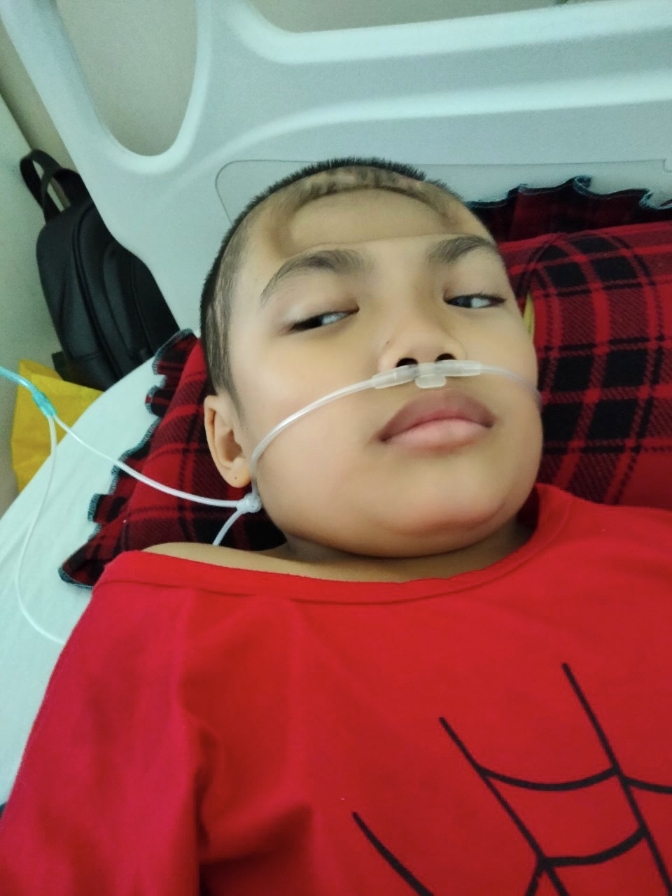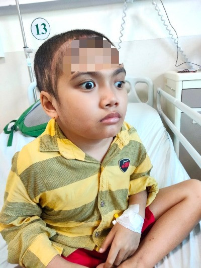 Tháng 6/2023, Tài thường xuyên kêu đau đầu nhiều sau gáy, nôn ói, mắt phải mờ hơn bình thường. Cha mẹ tưởng em bị té do chạy nhảy, nhưng khi dành dụm tiền đi khám tại Bệnh viện đa khoa Đồng Tháp, cả nhà mới chết điếng khi nghe bác sĩ thông báo em có khối u ở não.