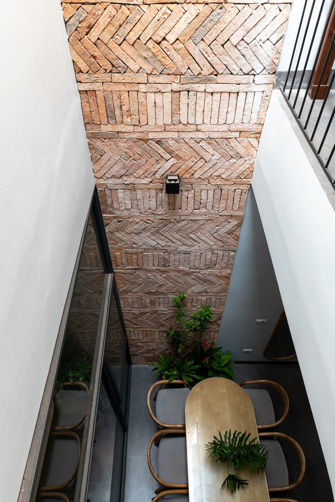 "Vì ngôi nhà đã cũ và chi phí hạn chế nên chúng tôi tìm phương án có thể tận dụng tối đa kết cấu cũ, tổ chức lại không gian bằng kiến trúc, thêm giếng trời, giúp ngôi nhà thông thoáng và nhiều ánh sáng tự nhiên hơn", kiến trúc sư cho biết.