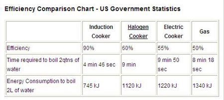 | Bảng so sánh hiệu quả sử dụng của các loại bếp (Nguồn: cục Thống kê Hoa Kỳ) |