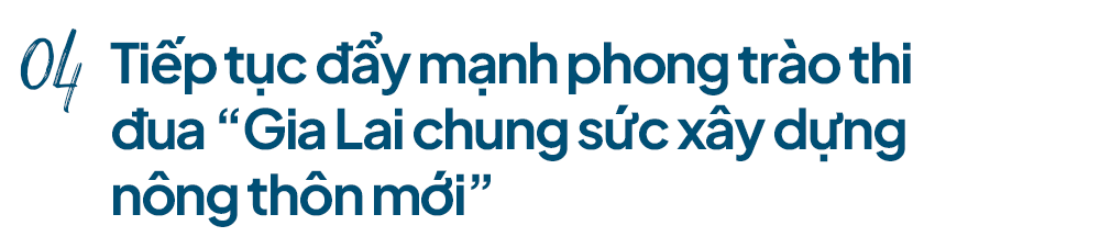 Tỉnh Gia Lai xác định tiếp tục đẩy mạnh phong trào thi đua “Gia Lai chung sức xây dựng nông thôn mới” đến các cấp, các ngành và toàn thể cán bộ, nhân dân trên địa bàn tỉnh để huy động đóng góp vào xây dựng nông thôn mới. Tăng cường vận động, tuyên truyền phát huy tối đa vai trò chủ thể của từng hộ gia đình trong xây dựng làng nông thôn mới trong đồng bào dân tộc thiểu số để xây dựng khu dân cư xanh, sạch đẹp, có kinh tế - xã hội phát triển, an ninh trật tự được đảm bảo, đáp ứng nguyện vọng của người dân.