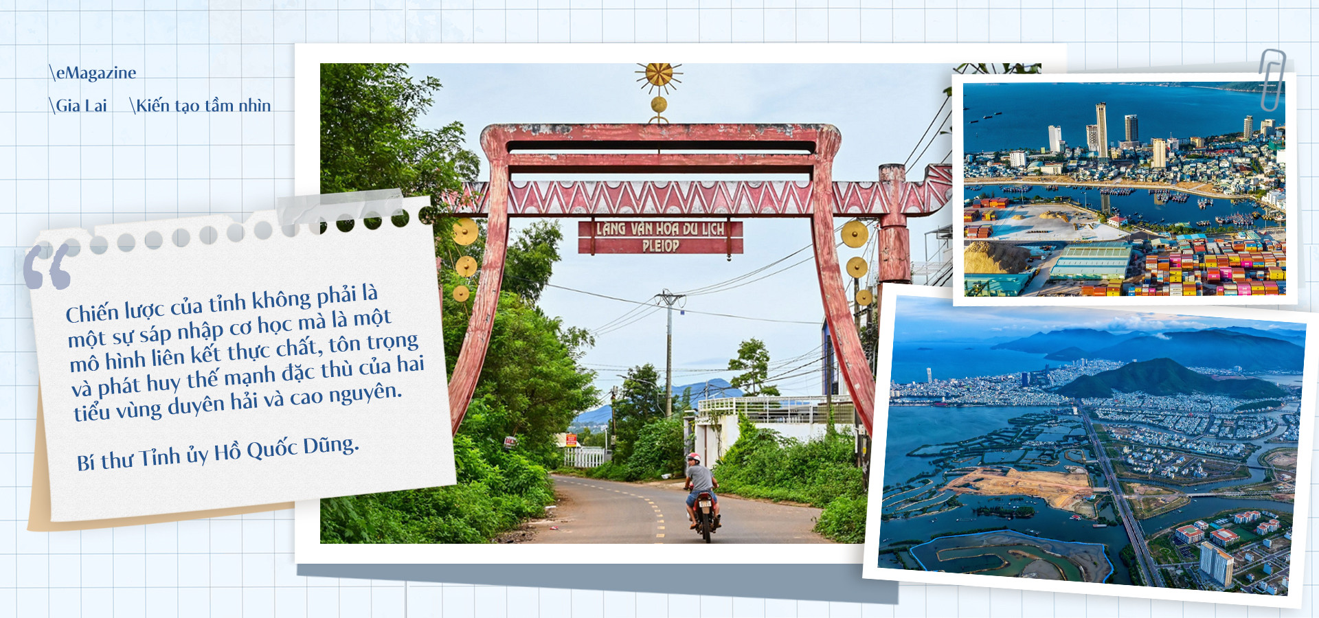 Mô hình này được hoạch định rõ ràng với sự phân vai đặc thù cho hai vùng: vùng duyên hải, với hạt nhân là khu vực thành phố Quy Nhơn trước đây, sẽ đóng vai trò trung tâm kinh tế biển, logistics và du lịch quốc tế; trong khi đó, vùng cao nguyên, với hạt nhân là khu vực thành phố Pleiku trước đây sẽ là trung tâm phát triển nông nghiệp công nghệ cao, năng lượng tái tạo và du lịch văn hóa-sinh thái đặc trưng.
