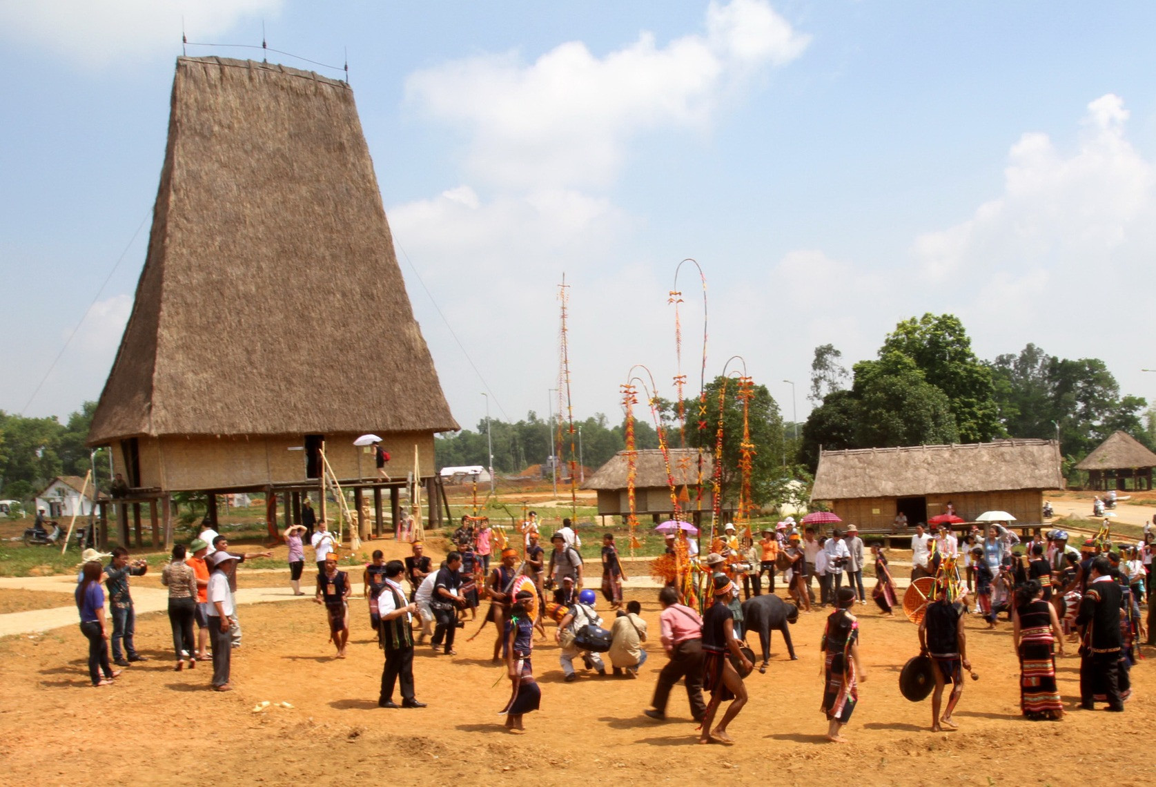 Tại đây, các nghệ nhân có thể tự do thoải mái tái hiện không gian sinh hoạt của cộng đồng; tổ chức trình diễn cồng chiêng, hát dân ca, dân vũ, biểu diễn nhạc cụ dân tộc, tạc tượng, đan lát, dệt vải… Tất cả đạo cụ, mô hình của các đoàn như: nhà rông, nhà mồ… đều được các đoàn làm từ vật liệu tự nhiên như: gỗ, tranh, tre..