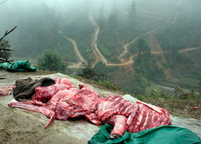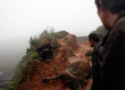 Trâu bò chết rét được mổ bán thịt tại Lào Cai - Ảnh: ANTĐ