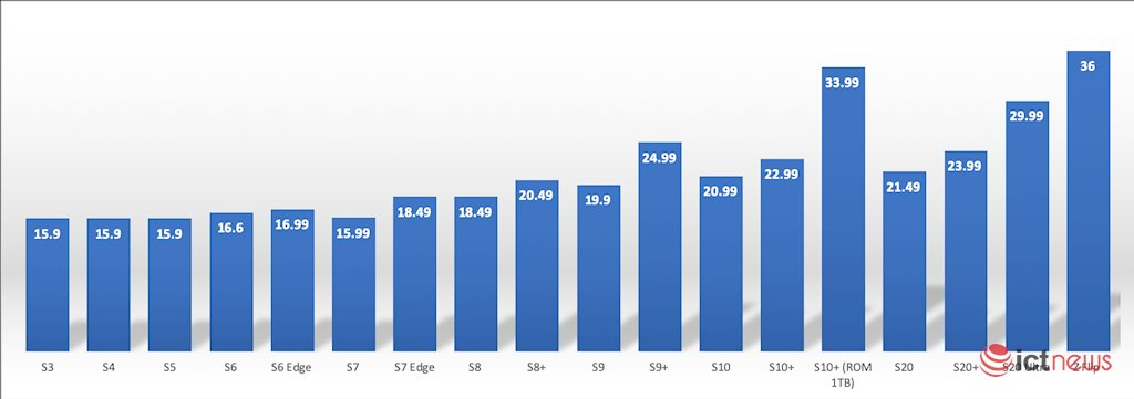 Từ năm 2016 trở về trước, giá smartphone Samsung khá ổn định, tuy nhiên kể từ chiếc S7 ra mắt năm này đến sau đó, mỗi năm hãng điện tử Hàn Quốc đều tăng giá smartphone của họ.