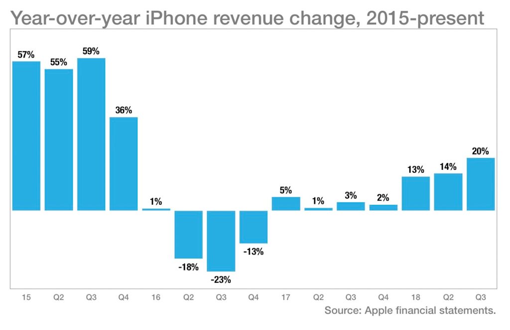 Một lý do có vẻ hợp lý hơn rằng, tăng trưởng lượng bán iPhone theo từng năm không tăng lên hoặc tăng rất nhẹ (có thời điểm âm), nhưng doanh thu và lợi nhuận dòng smartphone này lại ngày càng tăng. Việc này có được chủ yếu do Apple đã tăng giá iPhone qua từng năm.