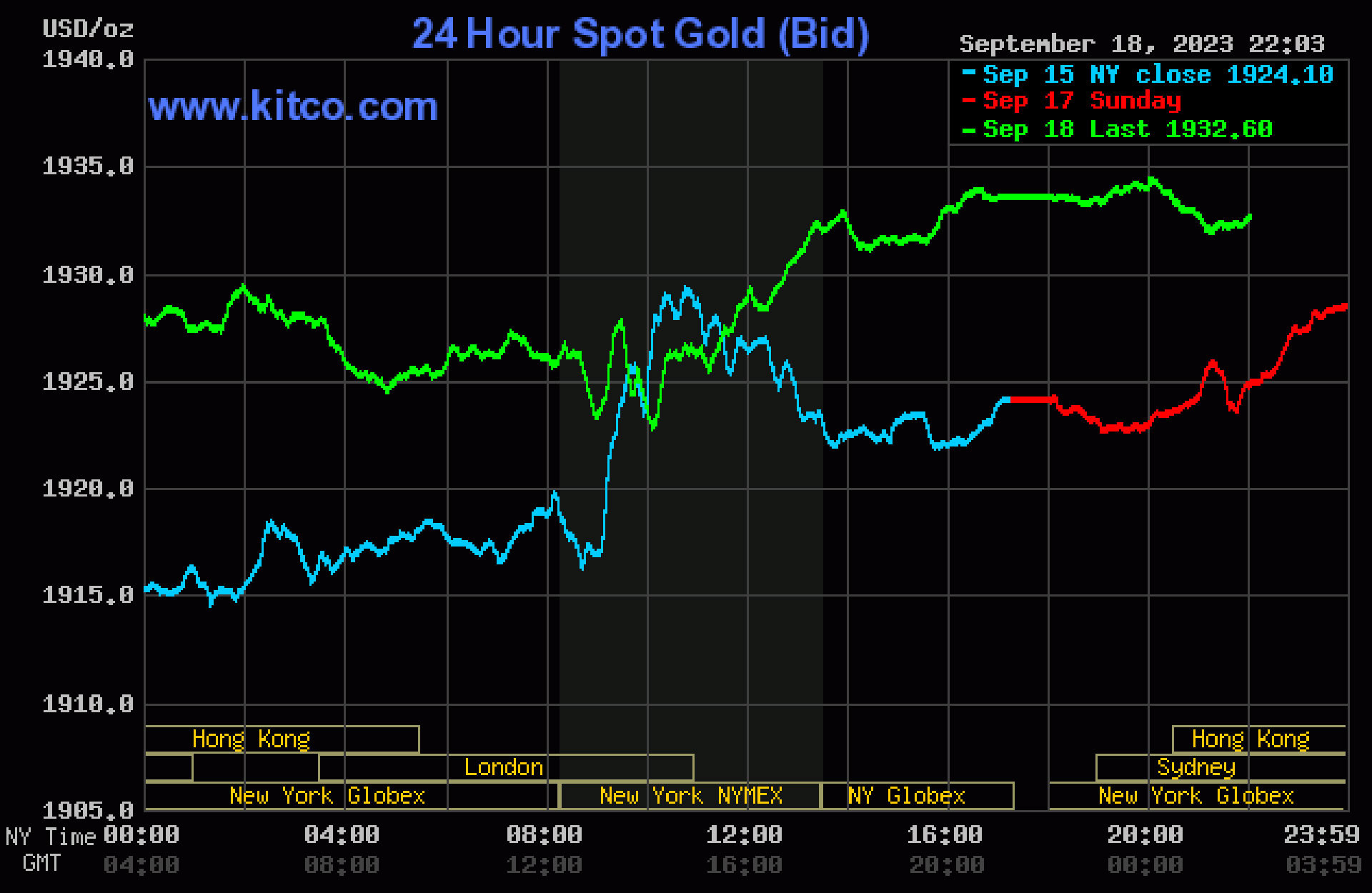 Trên thị trường thế giới, giá vàng giao ngay sàn Kitco ngày 18/9 (lúc 21h00, giờ Việt Nam) ở mức 1.923 USD/ounce.