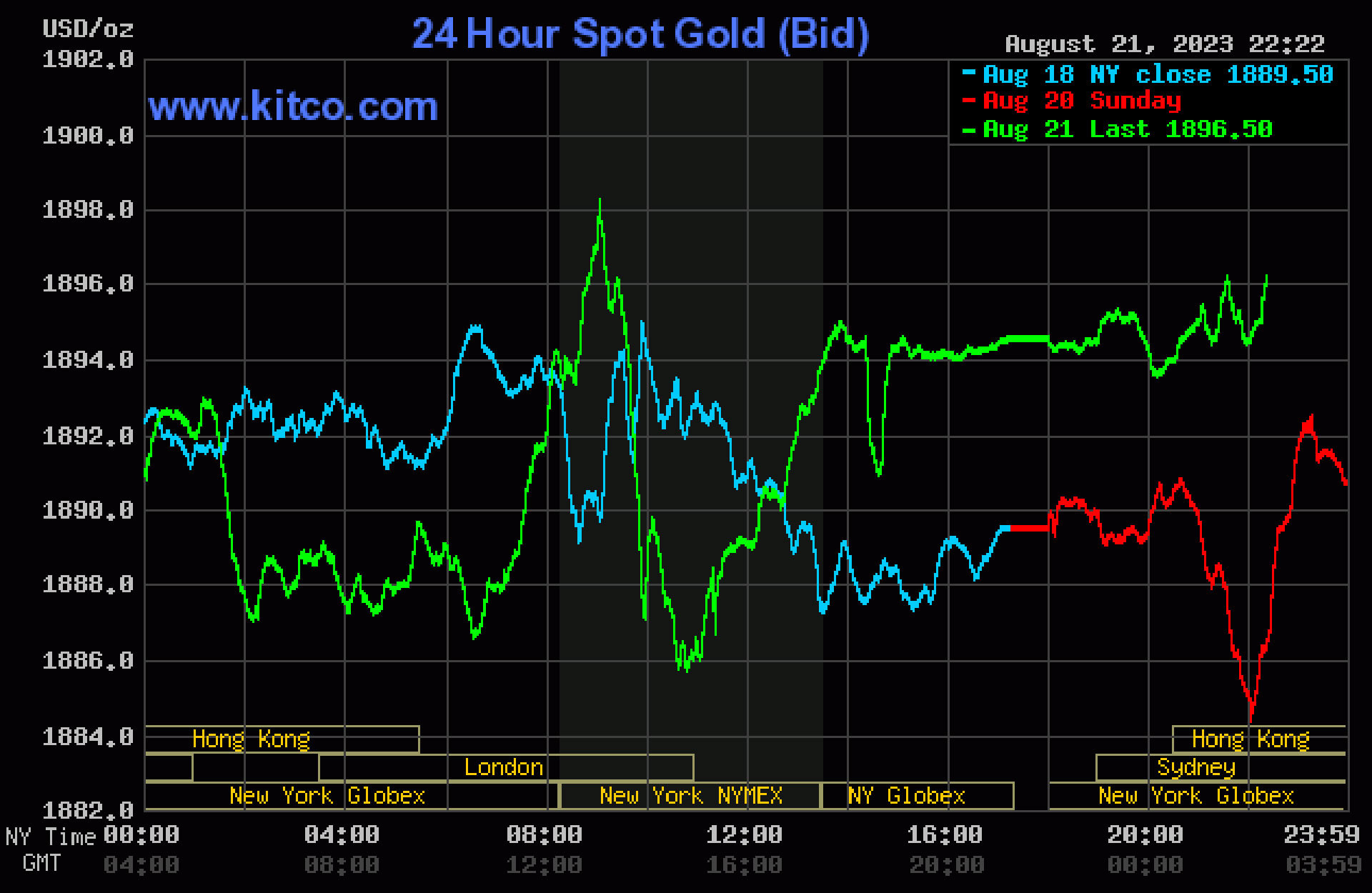 Trên thị trường thế giới, giá vàng giao ngay sàn Kitco 21/8 (lúc 19h, theo giờ Việt Nam) giao dịch ở mức 1.893,2 USD/ounce.