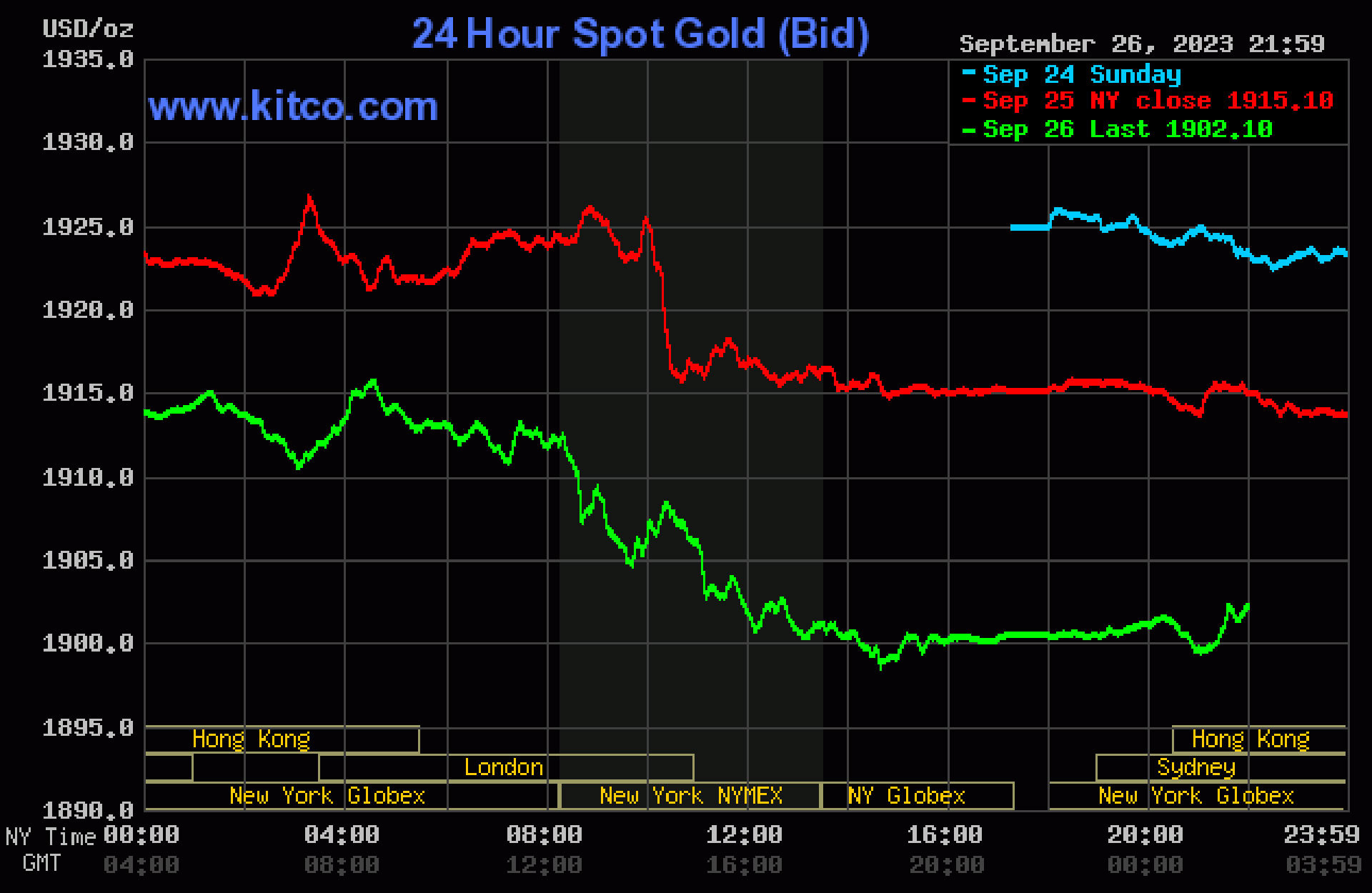 Đêm 26/9 (giờ Việt Nam), giá vàng thế giới giao ngay đứng quanh ngưỡng 1.907 USD/ounce. Vàng giao tháng 12 trên sàn Comex New York ở mức 1.937 USD/ounce.