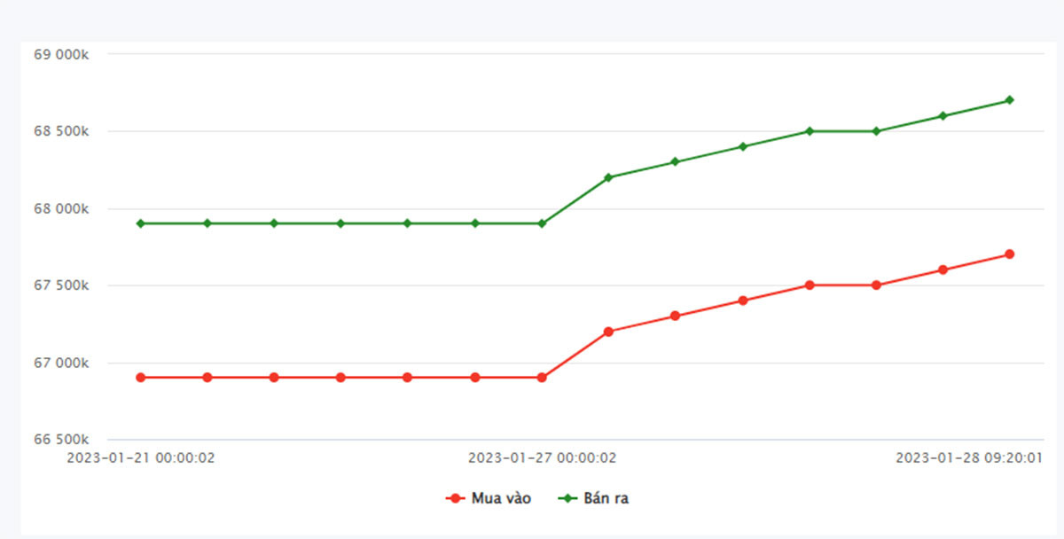 | SJC TP.HCM | 67,7 triệu đồng/lượng | 68,7 triệu đồng/lượng |