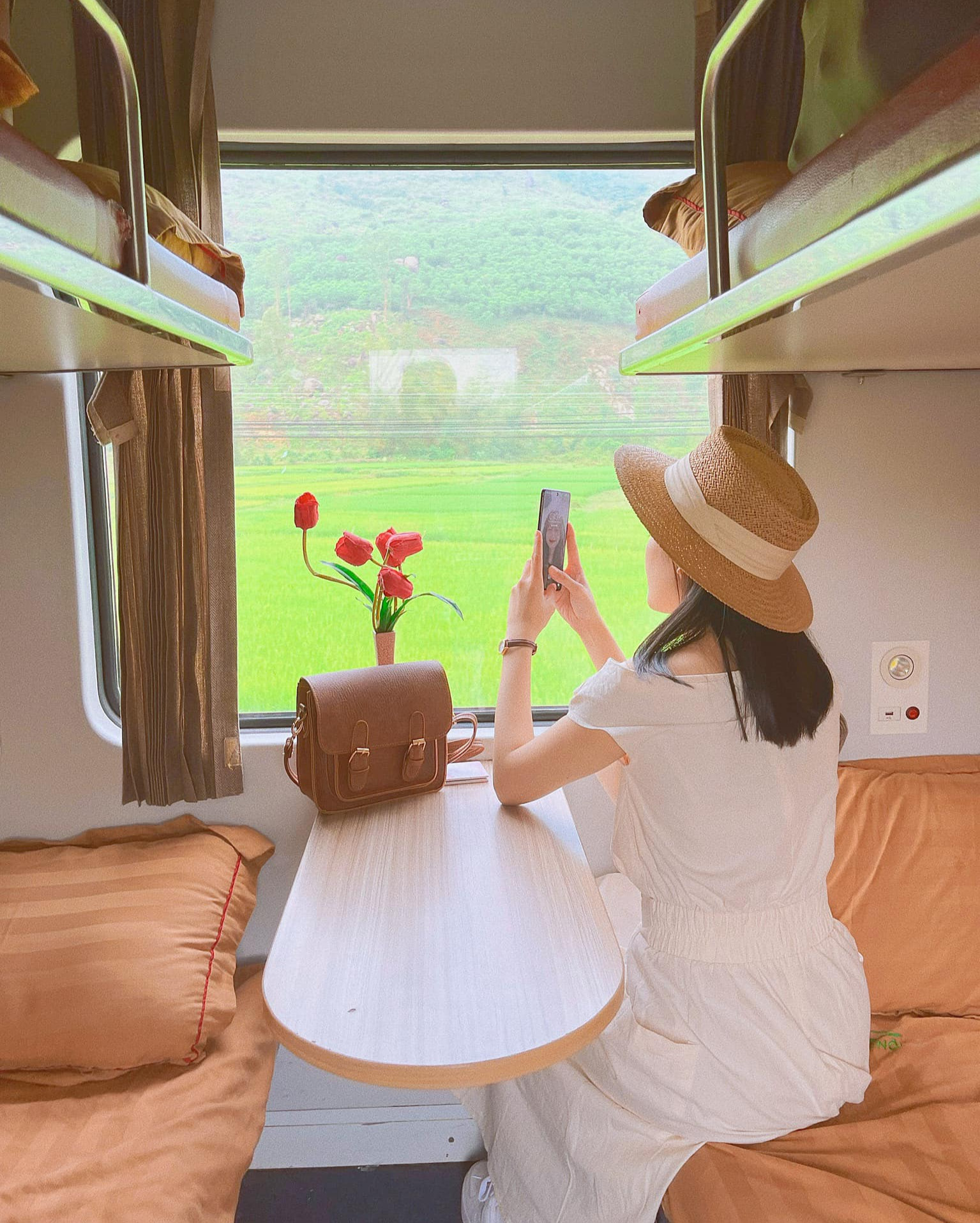 Theo chị Liên, giá vé tàu hỏa phù hợp với điều kiện kinh tế của nhiều người. Để thuận tiện lịch trình, chị chọn di chuyển bằng tàu SE 9, khởi hành lúc 14:30 từ Hà Nội, đến Đà Nẵng lúc 7:35 sáng hôm sau. Giá vé giường nằm tầng 1, khoang 4, có điều hòa là gần 1 triệu đồng/người.