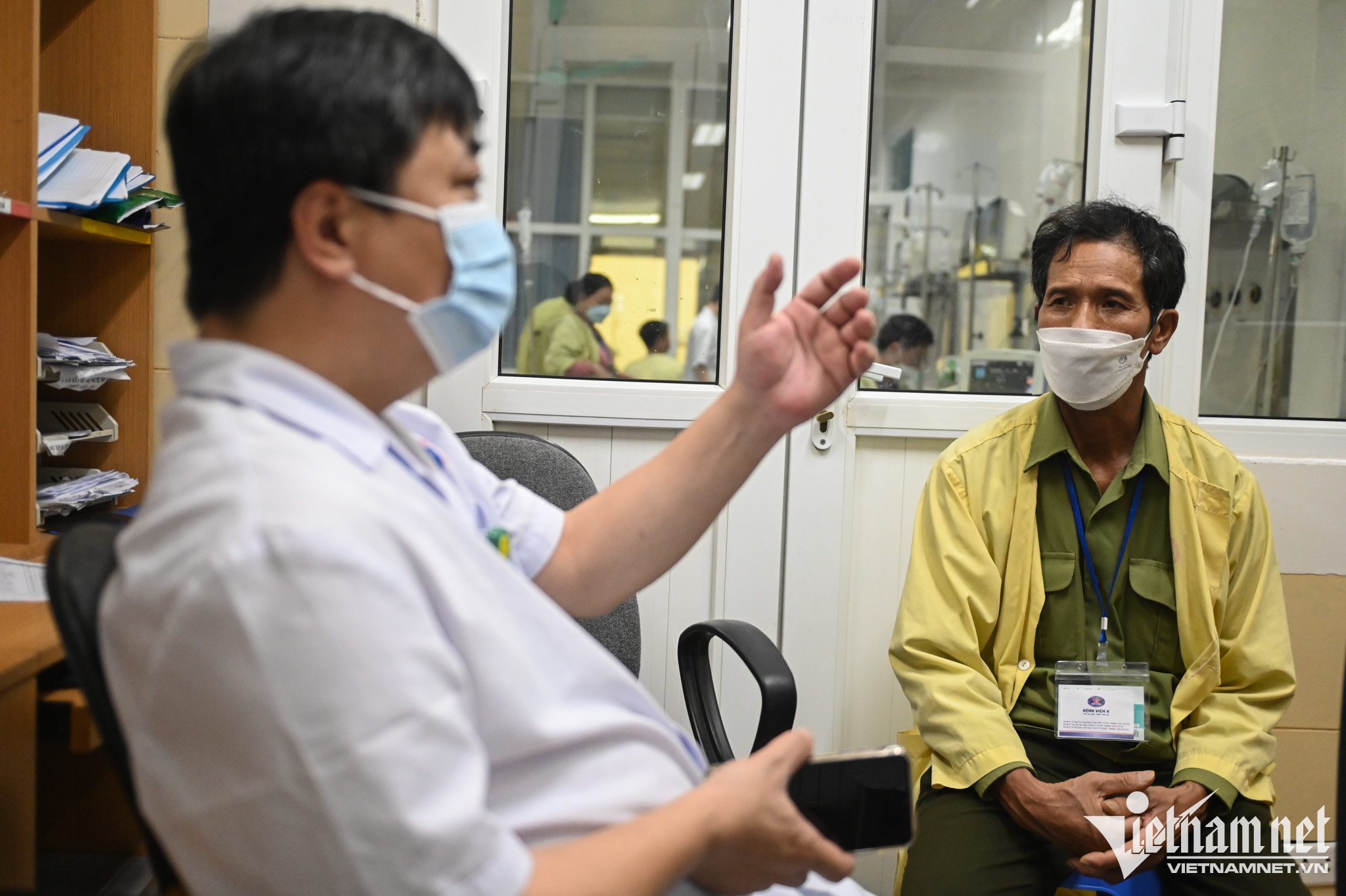 Thầy thuốc Bệnh viện K trò chuyện, tư vấn cho người nhà bệnh nhân. Ảnh: Thạch Thảo
