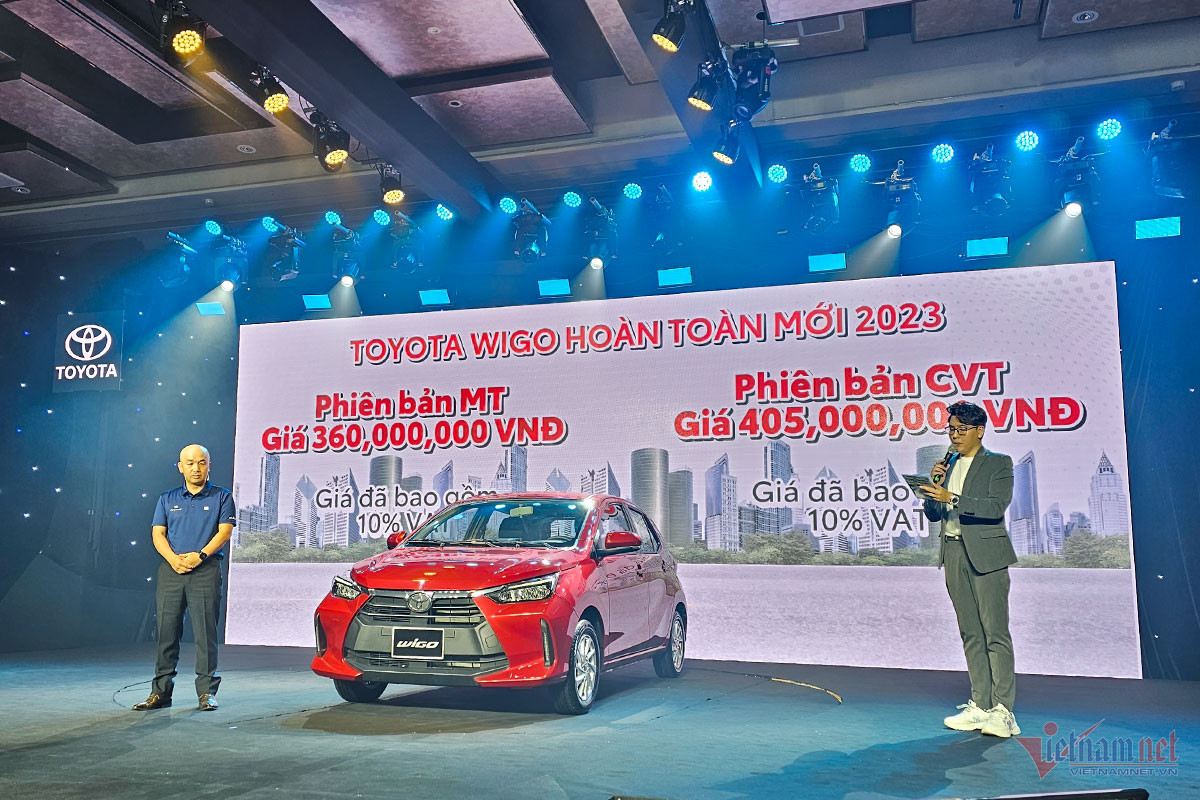Trong buổi ra mắt lần này, Toyota Wigo 2023 gây bất ngờ khi có giá thấp hơn so với mẫu xe cũ tới 40 triệu đồng, giá bán của mẫu xe mới này lần lượt là 360 triệu đồng (bản MT) và 405 triệu đồng (bản CVT).