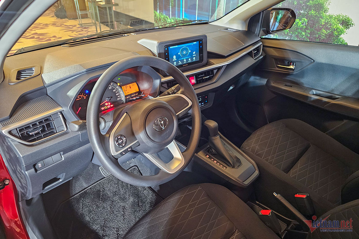 Nội thất của Toyota Wigo 2023 đã có thiết kế khá giống với mẫu SUV cỡ A Toyota Raize nên trông hợp mắt hơn mẫu xe cũ. Trang bị trên xe dừng lại ở mức cơ bản với màn hình trung tâm 7 inch, điều hòa hiển thị điện tử nhưng vẫn chỉnh tay, vô lăng nhựa và ghế nỉ.