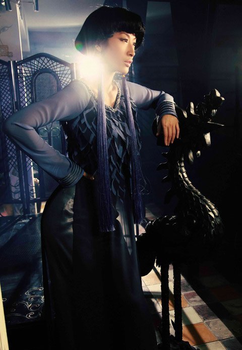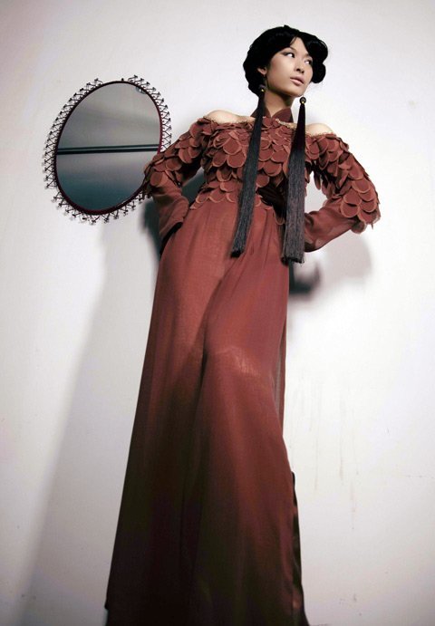 "Giấc mơ xuân" là bộ sưu tập áo dài cách điệu mang đậm phong cách Võ Việt Chung, mạnh mẽ nhưng vẫn đằm thắm, phá cách song vẫn không xa rời vẻ đẹp truyền thống của tà áo dài Việt.