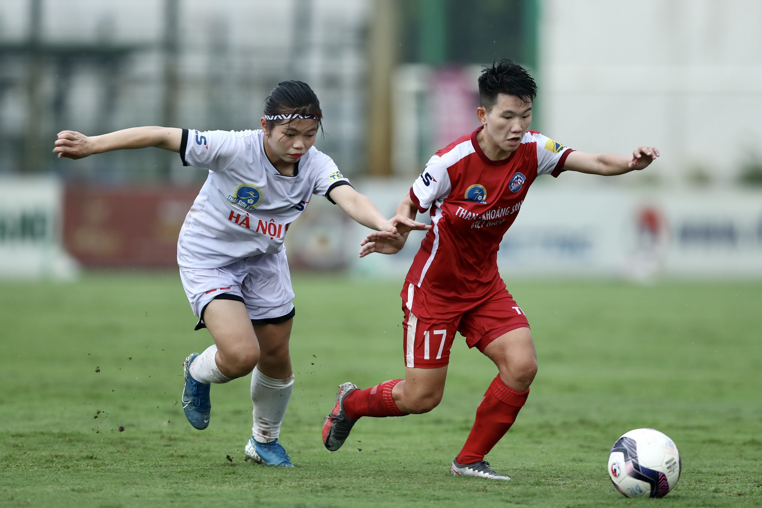 Than KSVN đặt mục tiêu giành chiến thắng trong trận đấu cuối cùng của lượt đi trước Hà Nội II. Đội bóng vùng mỏ tràn lên tấn công và nhanh chóng có được điều mình cần với bàn thắng của Đinh Thị Thuỳ Dung ở phút thứ 9.