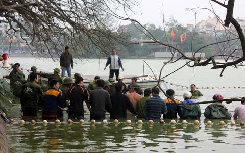 ![]() Rùa khổng lồ bị bắt được thả về hồ Đồng Mô. ![]() Trận bóng đá tranh giải "Rùa Hồ Gươm" cho Chương trình Bảo tồn rùa châu Á tổ chức. ![]() |
