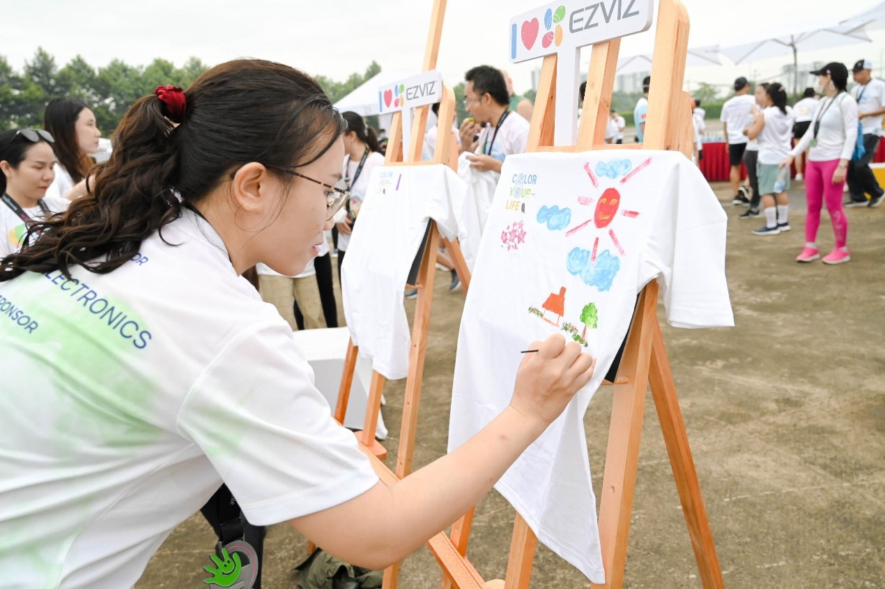 Nổi bật, gian hàng của EZVIZ tại khu vực sự kiện thu hút hàng nghìn lượt khách bởi các hoạt động thú vị như vòng quay may mắn, vẽ áo sáng tạo, check-in nhận quà… mang đến trải nghiệm đầy màu sắc vào cuối tuần cho các cá nhân và gia đình tham gia đường chạy.