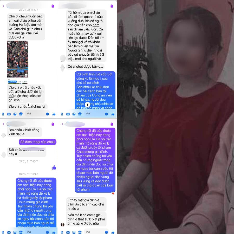Sáng 11/8, trao đổi với PV VietNamNet, một lãnh đạo Công an tỉnh Lai Châu cho biết, vào tối 31/7, Ban Quản trị Fanpage Công an tỉnh Lai Châu nhận được tin nhắn đề nghị giúp đỡ khẩn cấp cháu Tẩn Thị S. (SN 2008, ở xã Nậm Cha, huyện Sìn Hồ, tỉnh Lai Châu) về việc bị dụ dỗ đi bán trà sữa ở Hà Nội với mức lương cao.