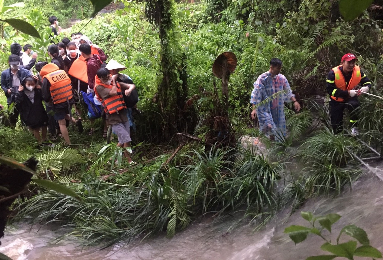 Theo đó, khoảng 16h cùng ngày, lực lượng chức năng nhận được thông báo, nhóm học sinh gồm 23 em đang đi du lịch thì bị mắc kẹt bên suối Tiên thuộc xã Quế Hiệp (huyện Quế Sơn, tỉnh Quảng Nam). Thời điểm này trời mưa lớn, nước từ thượng nguồn đổ về chảy xiết, dâng cao...