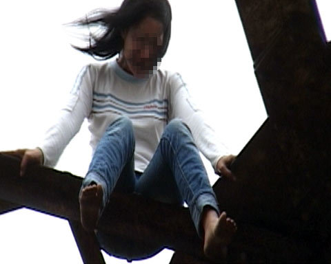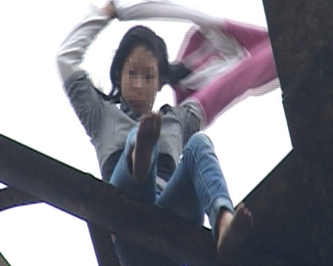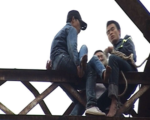Mặc cho nhân viên bảo vệ cầu và người dân khuyên giải cô gái cứ thế leo lên. Lúc đầu chỉ ở ngay đầu trụ cầu sau leo lên tận đỉnh trụ, mọi người khuyên thế nào cũng không được”.